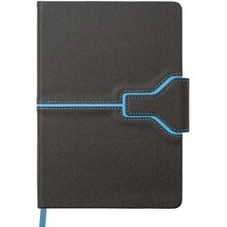 Highlights: Features a black textured faux leather cover with color detailing at the center